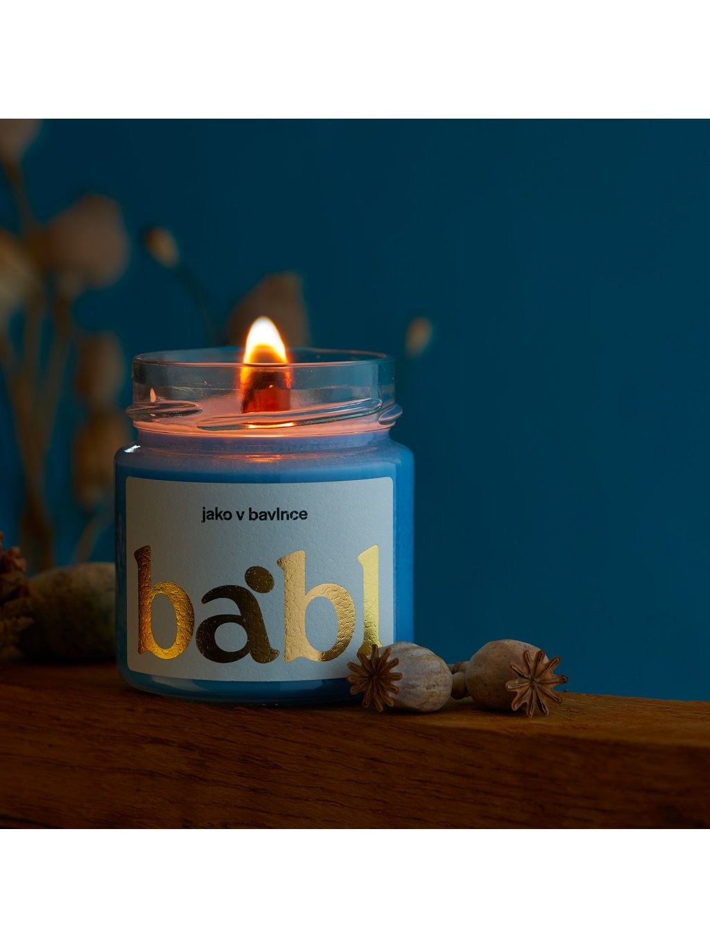 K výrobě používám 100% čistý sójový vosk, tichý dřevěný knot a opakovaně využitelnou sklenici o objemu 225 ml.